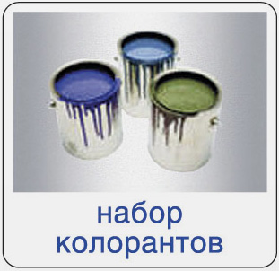 Колоранты Или пигментные пасты. С их помощью можно получить 14 тыс. цветов. Благодаря компьютерному подбору колорантов при отсутствие какого-либо пигмента, машина создает рецепт, как это цвет может быть получен путем смешения других комбинаций. |